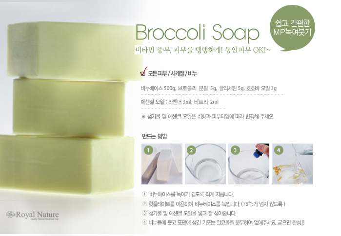 구매하기 옵션 옵션 선택 투명베이스1kg + 브로콜리분말50g + 라벤더E.O10ml 화이트베이스1kg + 브로콜리분말50g + 라벤더E.O10ml 총 상품 금액 0 원 장바구니 구매하기